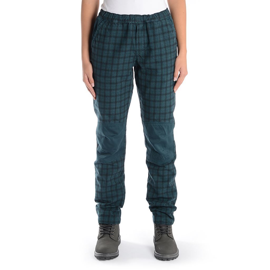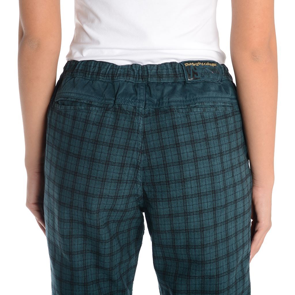 calanque donna a quadri con toppe al ginocchio in tinta unita, coulisse sul fondo e in vita, vestibilità ampia e comoda