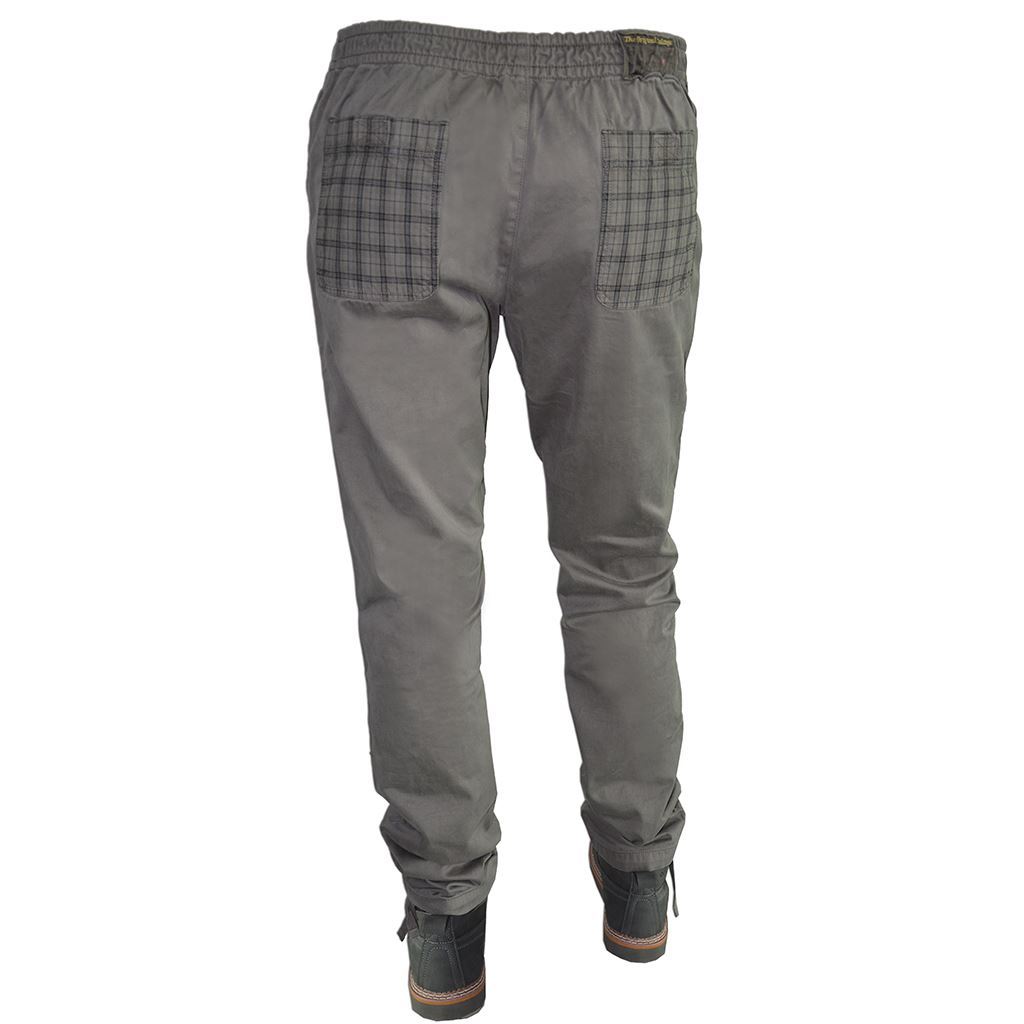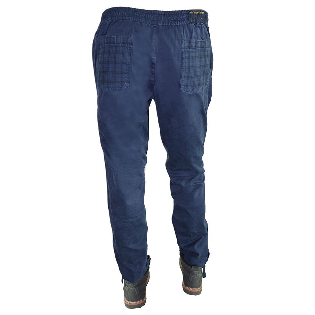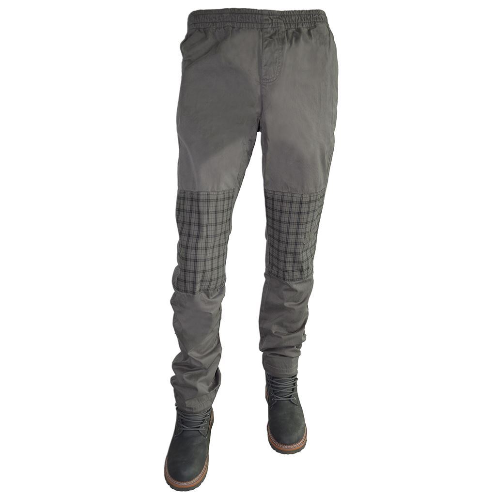 man plain calanque pants with knee patches and back pockets in check fabric, waist and botton drawstring