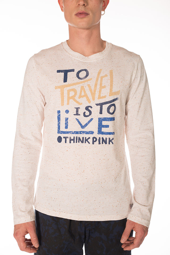 man long sleeves roundneck t-shirt with print, buttoned cotton