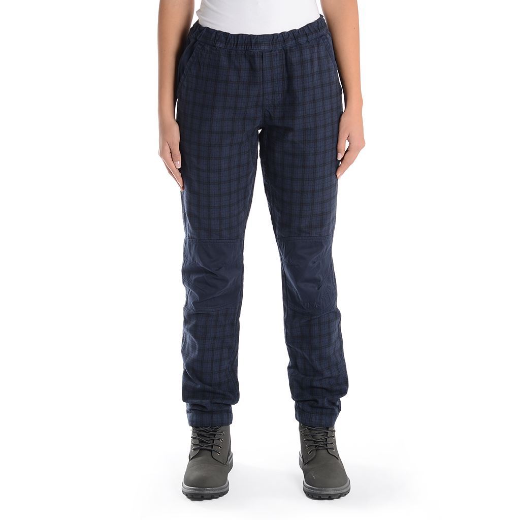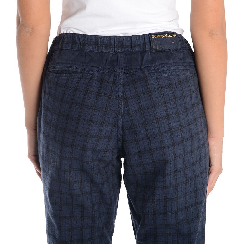 calanque donna a quadri con toppe al ginocchio in tinta unita, coulisse sul fondo e in vita, vestibilità ampia e comoda