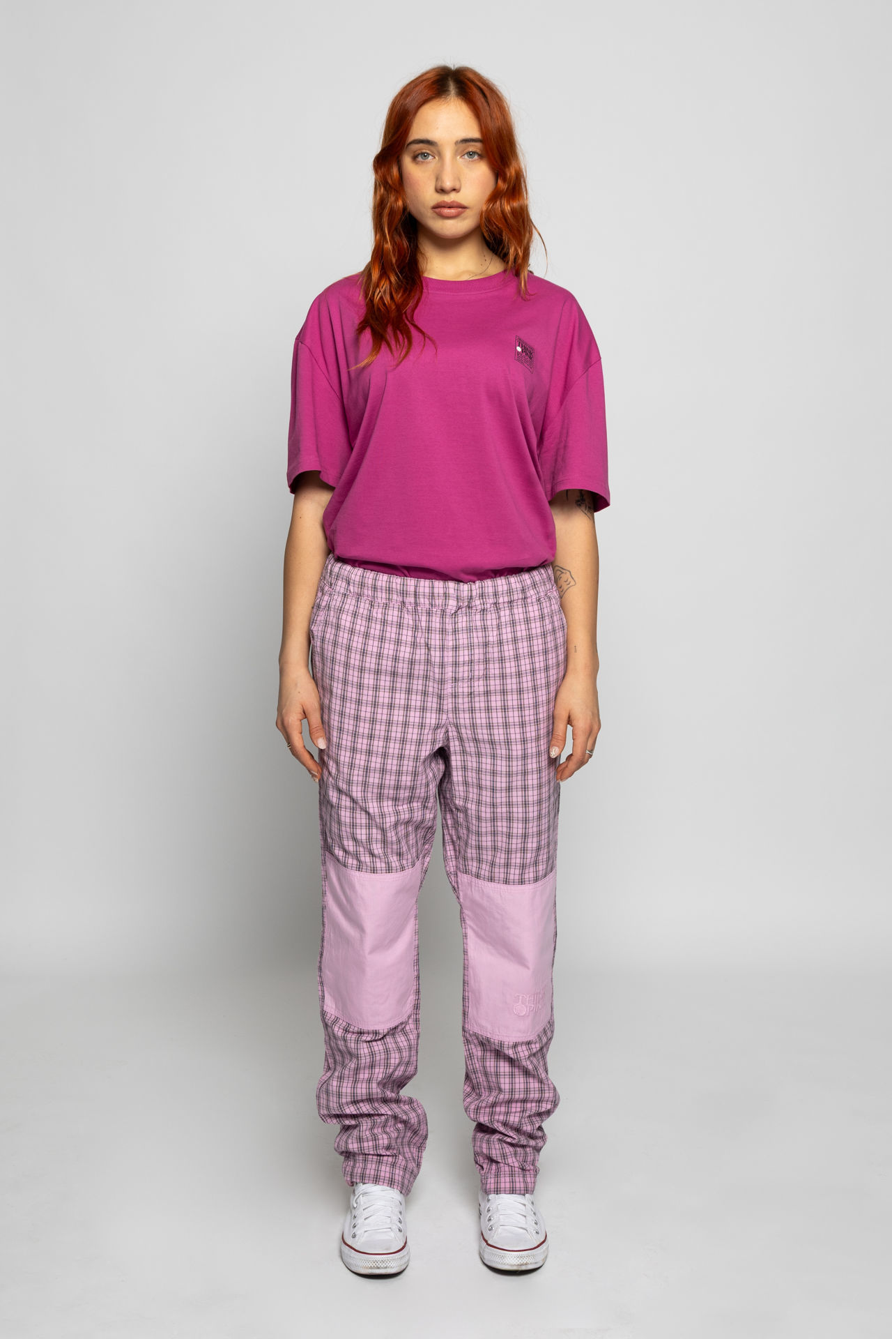 pantalone calanque UNISEX a quadri con toppe al ginocchio e tasche posteriori in tinta unita, vestibilità comoda,coulisse sul fondo e in vita, cotone tinto in capo