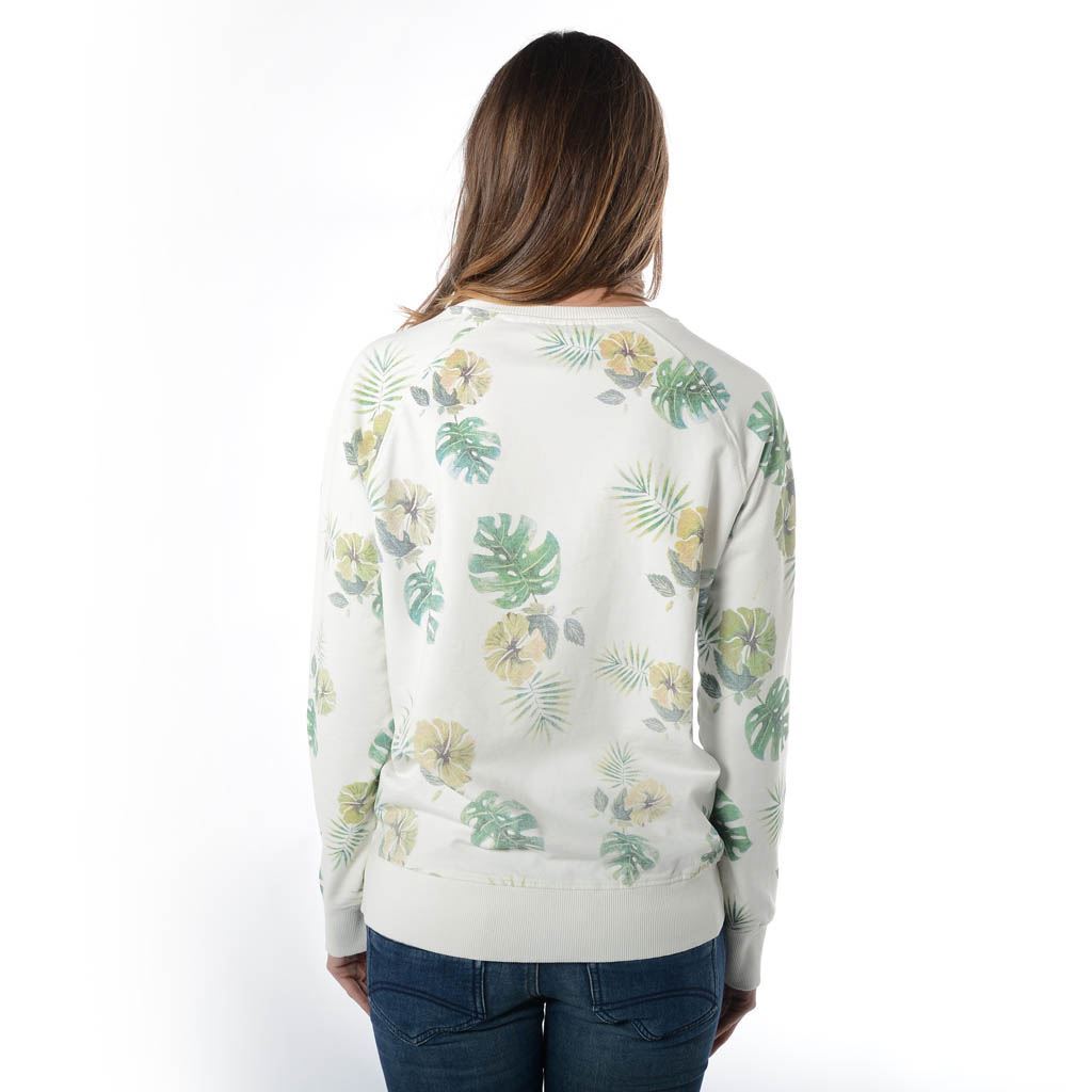 felpa donna girocollo con stampa floreale all over e ricamo, 300gr
