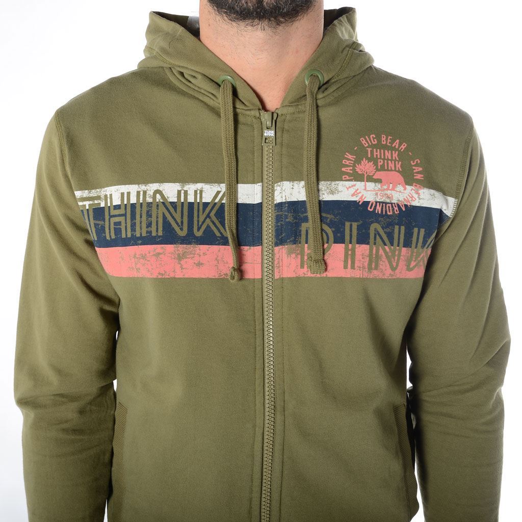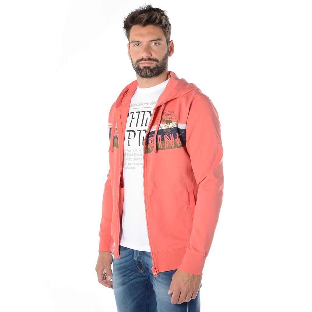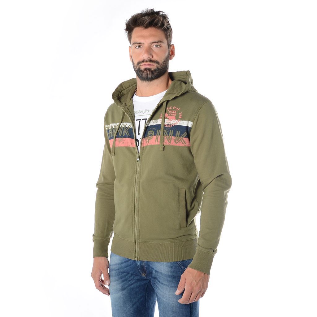 felpa uomo full zip con cappuccio e tasche laterali, stampa vintage, in cotone 300gr