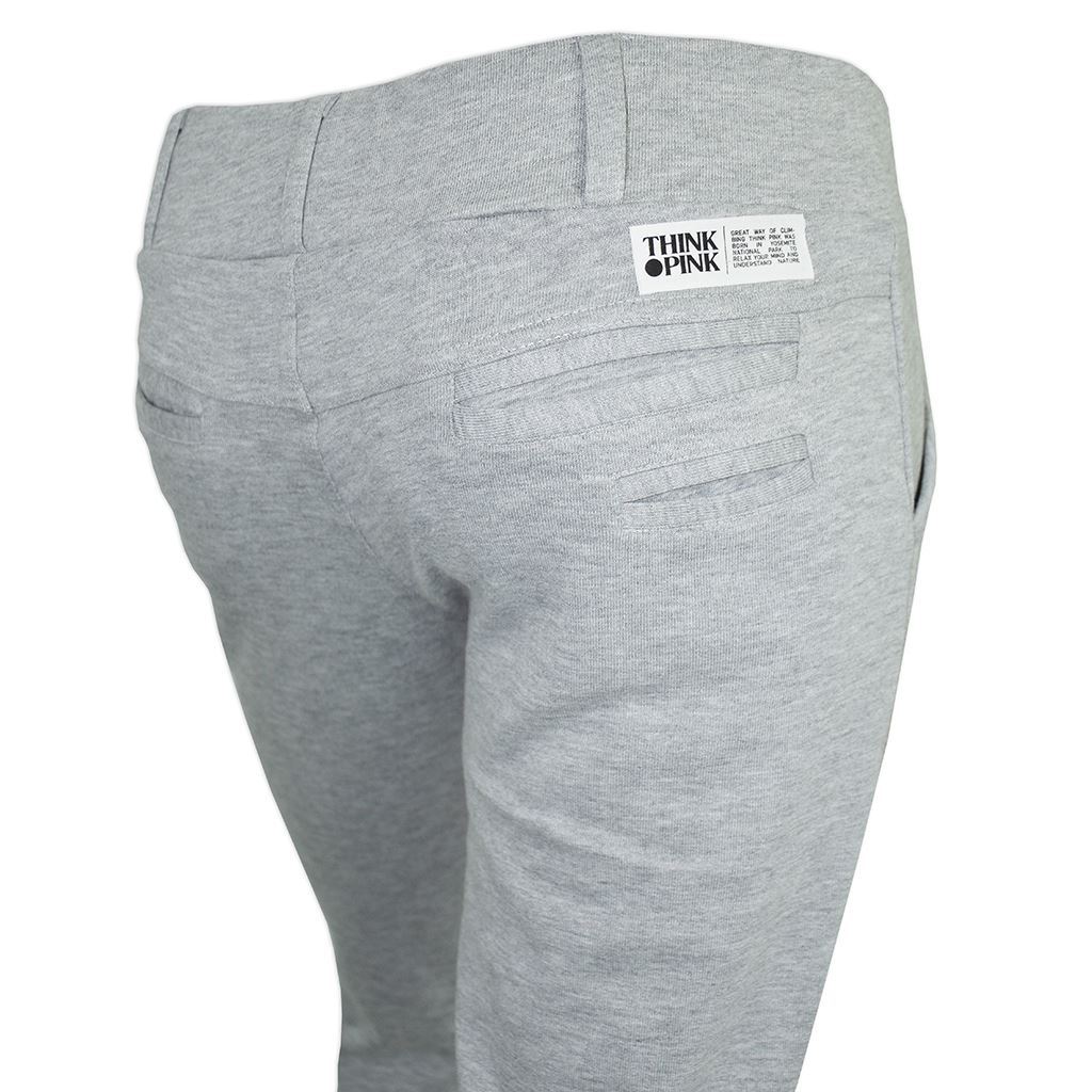 pantaloni lunghi donna in felpa leggera di cotone, toppe ginocchio in tono, vestibilità slim fit