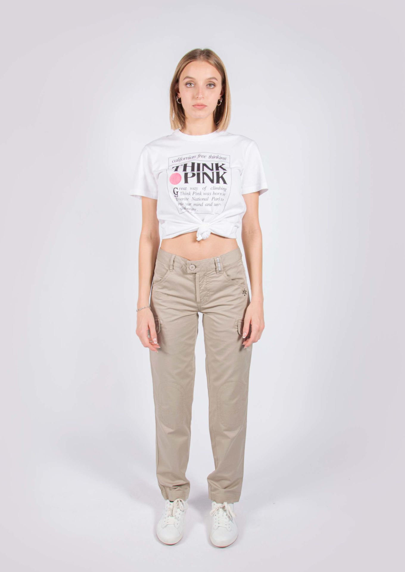 Pantaloni donna cargo, vestibilità slim, cotone tinto in capo con impunture